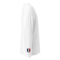 • Double-needle stitched collar, shoulders, armholes, cuffs, and hem